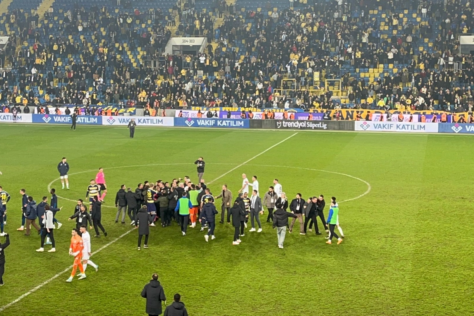 Yere düşen Meler, daha sonra arbede arasında kaldı. Güvenlik güçleri sahaya girerek olayı kontrol altına aldı.