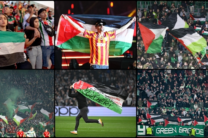 FİTİLİ CELTİC ATEŞLEDİTarihi boyunca aykırı duruşuyla dikkat çeken İskoç temsilcisi Celtic'in tribünleri, hem yerel lig hem UEFA Şampiyonlar Ligi maçlarında yaptıkları koreografi ve dalgalandırdıkları onlarca Filistin bayrağıyla dünya çapında dikkati çekmeyi başardı.