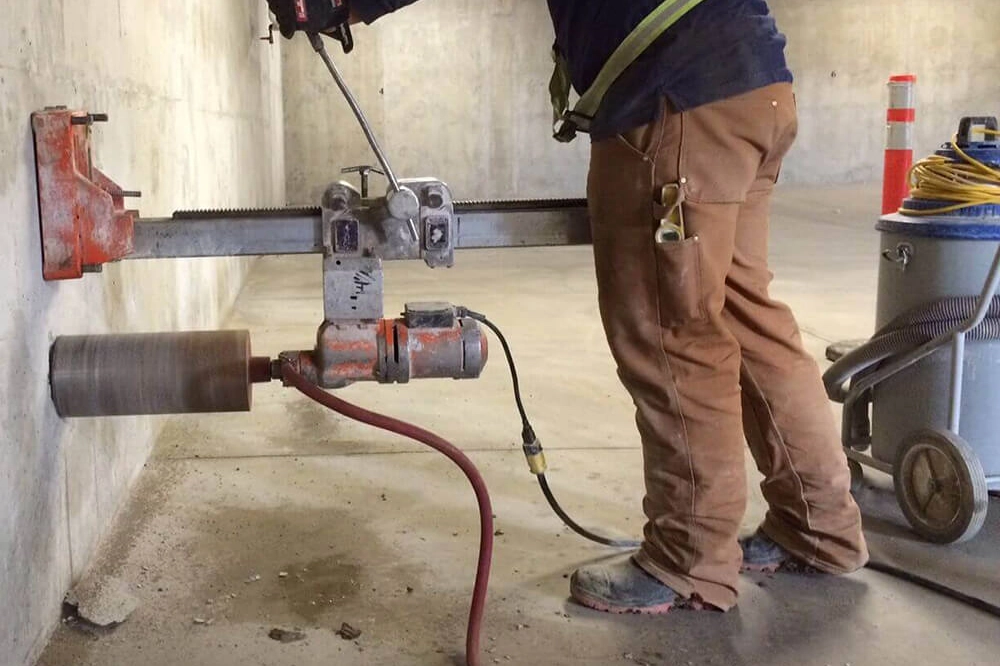 Delme İşlemiSabitleme: Karot makinesi, alınacak numunenin boyutlarına uygun olarak ayarlanır ve beton yüzeyine sıkıca sabitlenir.