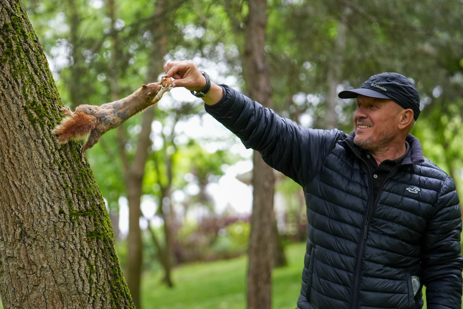 Cebindeki fındıkları çimenlere bıraktığında sincapların yanına yaklaştığını gözlemleyen Sandıkcı, gün geçtikçe koruya ziyaretlerini arttırdı.