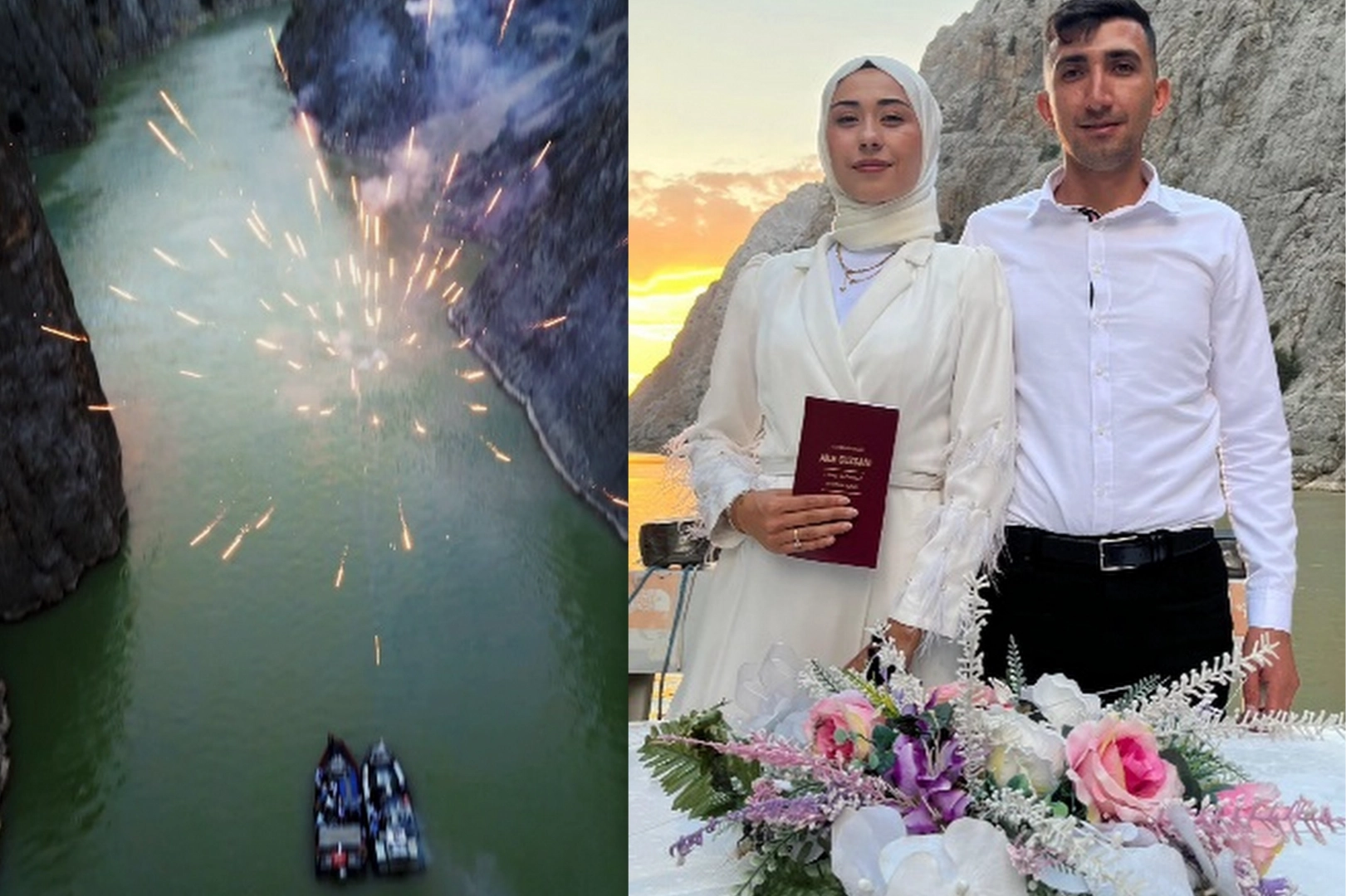 Karanlık Kanyonda teknede ilk olarak gerçekleşen nikah akdi görsel şölen oluşturdu. Nikahın ardından Karanlık Kanyon havai fişek gösterisiyle renklendi.