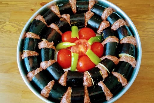PATLICAN KEBABI TARİFİ Malzemeler: 8-10 adet küçük boy patlıcan Yarım çay bardağı sıvı yağ (patlıcanları yağlamak için) 1 kilogram orta yağlı dana kıyma 2 diş ezilmiş sarımsak 2 adet orta boy soğan 1 adet yumurta 3 yemek kaşığı galeta unu 2 tutam maydanoz Karabiber Kırmızı toz biber Kimyon Pul biber (Varsa biraz köfte baharatı) Tuz Sosu İçin: Yarım çay bardağı zeytinyağı 1 yemek kaşığı tereyağı Yarım yemek kaşığı tatlı biber salçası Yarım yemek kaşığı domates salçası 1 su bardağı sıcak su (200 ml) Tuz Kekik Karabiber Acı pul biber Yapılışı: Köfte Hazırlığı: Derin bir kapta kıymayı, ince doğranmış soğanı, ezilmiş sarımsağı, ince kıyılmış maydanozu, baharatları, yumurtayı ve galeta ununu birleştirip yoğurun. Karışımın üzerini kapatıp buzdolabında dinlendirin. Patlıcan Hazırlığı: Patlıcanları kalın dilimler halinde kesin. Bol tuzlu suya koyup üzerini ağırlıkla kapatın ve 30 dakika bekletin. Ardından tuzlu suyu süzün ve bol su ile yıkayıp tekrar süzün. Patlıcanları Yağlama: Patlıcanları geniş bir kaba alıp üzerine yarım çay bardağı sıvı yağ gezdirin ve karıştırın. Köfte Şekillendirme: Dinlenmiş kıymayı çıkarıp, patlıcan dilimlerinin genişliğinde yuvarlak şekiller verin. Tepsiye Dizme: Bir patlıcan dilimi ve bir köfte şeklinde yan yana dizerek borcama yerleştirin. İsterseniz aralarına soğan, dilimlenmiş sarımsak, domates ve biber de ekleyebilirsiniz. Sosu Hazırlama: Küçük bir tavada yağları ısıtın, baharatları ekleyip kavurun. Ardından sıcak suyu ekleyip bir taşım kaynatın ve karışımı tepsinin üzerine dökün. Pişirme: Islanmış bir fırın kağıdını tepsinin üzerine kapatın. Önceden ısıtılmış 200 derece fırında alttan ikinci rafta 45 dakika pişirin. Sonra kağıdı çıkarın ve 205 derecede 20 dakika daha, üzeri kızarana kadar pişirin. Gerekiyorsa suyu süzebilirsiniz. Servis: Yemeğiniz piştikten sonra sıcak servis edin. Önceden pişirdiyseniz, servis yapmadan önce kuru bir fırın kağıdı ile örtüp 200 derecede 20 dakika ısıtabilirsiniz.