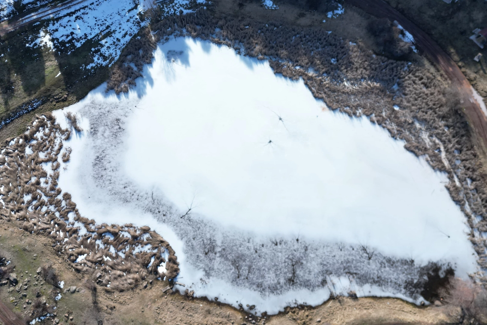 Sivas'a 103 kilometre uzaklıktaki Zara ilçesinde bulunan Sülüklü Göl, hastalıklarına çare arayanların uğrak noktası oluyor. Sarıçam ormanları içerisinde bulunan ve dipten kaynayan gölde yetişen sülükler, birçok hastalığın tedavisinde kullanılıyor. Gölün içerisinde bulunduğu sarıçam ormanlarında kar yağışının olmamasından dolayı bahardan kalma görüntüler yaşanırken, Sülüklü Göl'ün yüzeyi buz tuttu. Göl çevresine piknik yapmaya giden Murat Köse, buz tutmuş gölü dron ile görüntüledi. Köse, gölün buz tutmuş olacağını düşünmediklerini ancak buz tutmuş halinin görsel şölen oluşturduğunu belirtti.