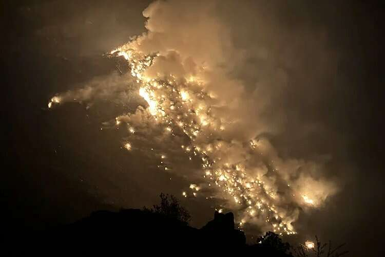Ekipler, kısa sürede engebeli arazinin yaklaşık 5 dönümüne yayılan ve ara ara küçük çaplı patlamaların meydana geldiği yangını söndürmek için çalışmalarını sürdürüyor.
