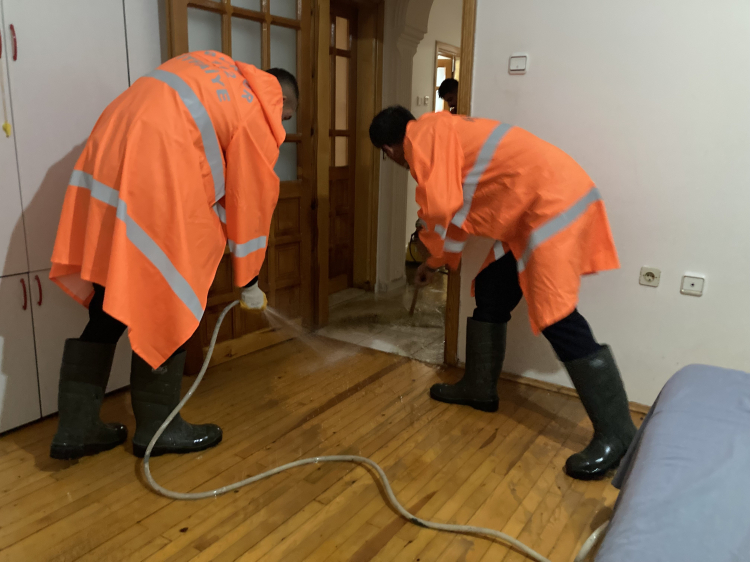 Evini kanalizasyon suyu basan Fatma Çetin, “Tuvaletten gelen lağım suyu, pislik ve idrar olduğu gibi odalara doldu. Şu an bütün parkeler bu pisliği çekmiş durumda. Bir anda oldu her şey, baş edemedik. Her yer dışkı oldu. Neye uğradığımızı şaşırdık. İnşallah hastalık kapmayız.” ifadesinde bulundu.
