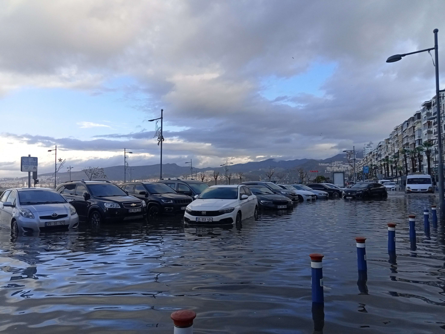 Kocaeli ve İzmir'de etkili olan fırtına nedeniyle deniz taştı. Cadde ve lüks araçlar ise sular altında kaldı.