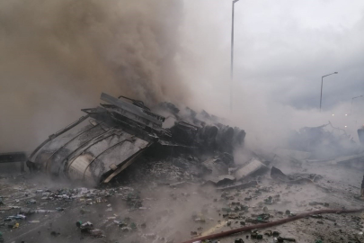 Mersin'in Tarsus ilçesinde parfüm taşıyan tırın devrilmesi sonucu araçta yandın çıktı.