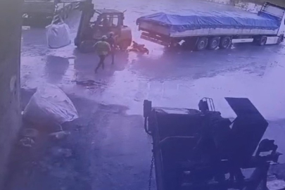 Kamyon ile forklift arasında sıkışan kamyon şoförünün, sağlık ekiplerince yapılan kontrolde olay yerinde hayatını kaybettiği belirlendi.