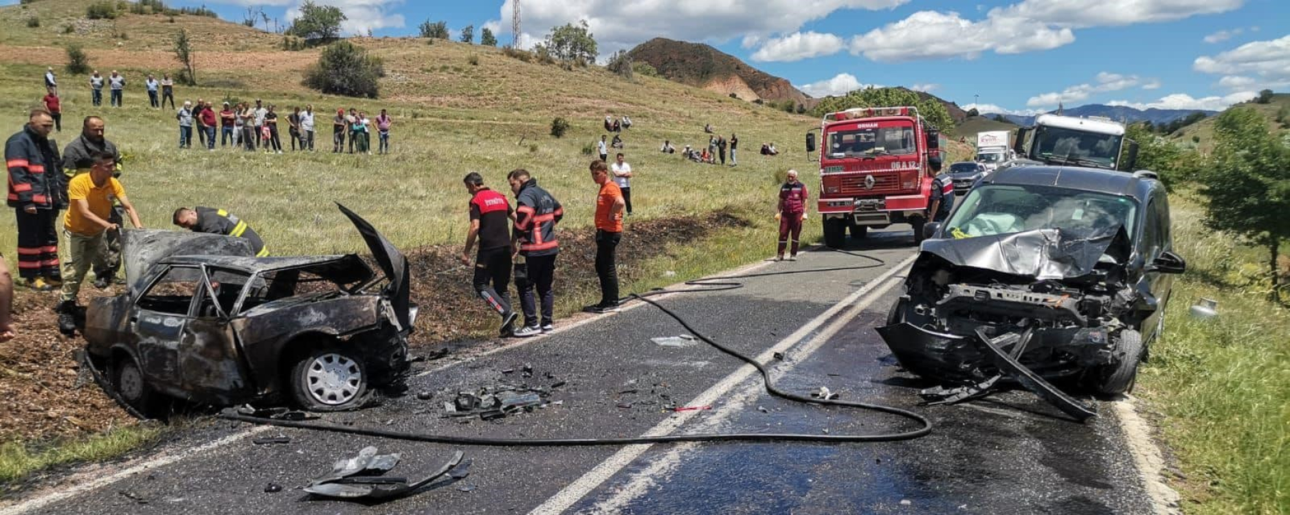Çankırı’nın Yapraklı ilçesinde hafif ticari araç ile Tofaş marka otomobil alev alev yandı. Kazda kullanılmaz hale gelen Tofaş'taki 1 kişi öldü, 1 kişi ise yaralandı.