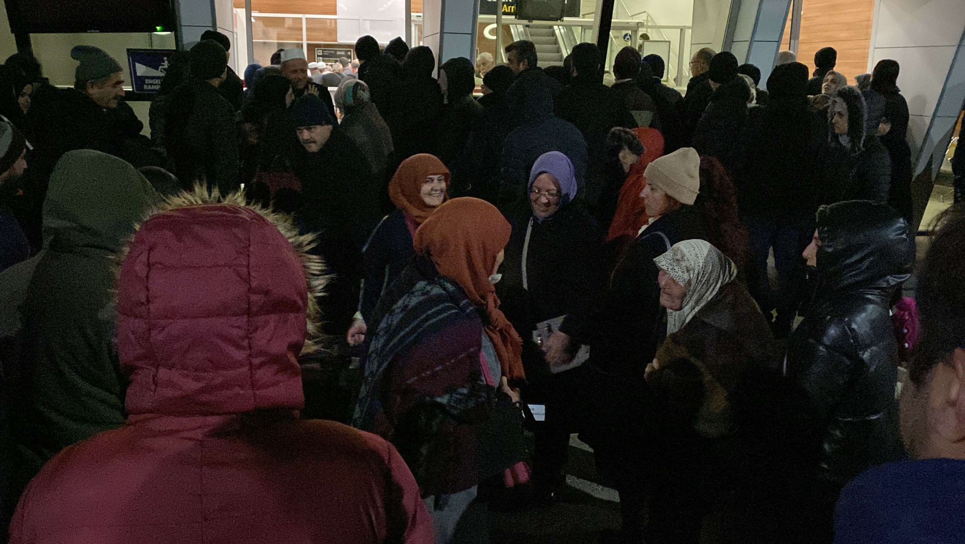 7 saat süren gecikmenin ardından havalimanında bekleyen yakınlarına kavuşan kafile gözyaşlarına boğuldu.