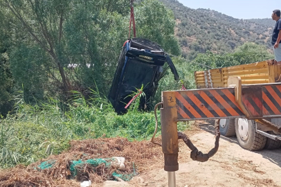 Denizli'nin Günay ilçesinde nehre uçmuş vaziyette görülen bir otomobilde 2 cansız beden bulundu.