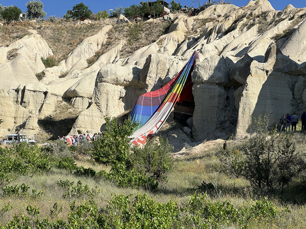 Sıcak hava balonu kayalıklara iniş yaptı