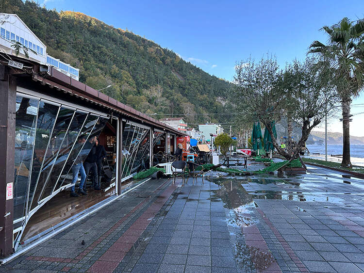 Sinop'un Ayancık ilçesinde denizin taşması sonucu sokaklar su altında kaldı.