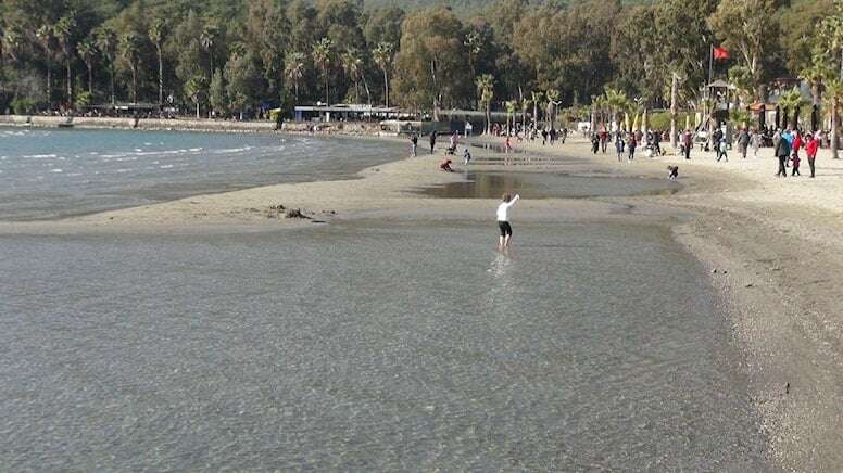 Muğla'nın Akyaka sahilinde deniz suyu 50 metre çekildi.