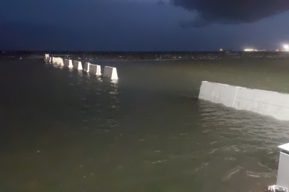 Dev dalgaların oluşması sonucunda deniz sahile taştı. Denizin sahile taşmasıyla birçok alan su altında kalırken adeta tsunamiyi andıran görüntüler ortaya çıktı.