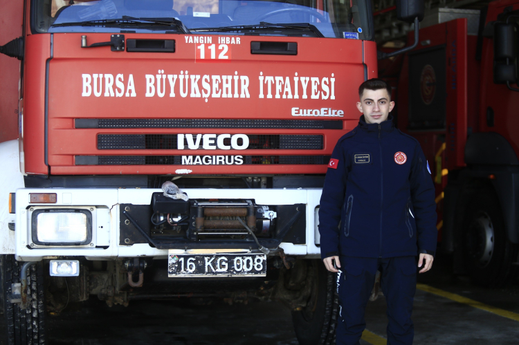 18 yıl sonra aynı poz: Bursa’da genç itfaiyeci çocukluk hayalini gerçekleştirdi