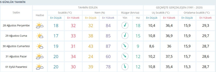 BURSA’DA 5 GÜNLÜK HAVA TAHMİNİ (29 AĞUSTOS - 2 EYLÜL 2025)