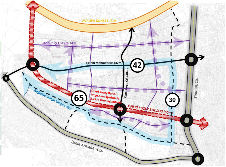 Projede en dikkat çeken detaylardan biri de 29 kilometre uzunluğunda, 65 metre genişliğindeki Kuzey Bulvarı. Ankara-İzmir yolunda Mudanya yoluna paralel uzanacak bulvar, kentsel dönüşüm alanlarını kapsayan ana ulaşım omurgası olacak. Bu bulvar, trafik düzenlemesinin yanı sıra ekolojik yeşil sistemle entegre çalışacak.