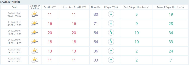 4 Mayıs Pazar günü parçalı bulutlu hava devam ederken sıcaklık 8–23°C arasında olacak. Pazar gününe göre biraz daha ısınan havayla birlikte nem oranı yüzde 34–82 arasında seyredecek.