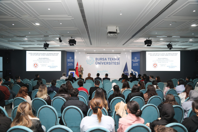 Oklahoma Eyalet Üniversitesi’nden Prof. Dr. Salim Hızıroğlu, Bursa Teknik Üniveristesi’nde (BTÜ) düzenlediği seminerde öğrencilere doğru kariyer planlaması ve ABD'deki yükseköğrenim fırsatları hakkında değerli bilgiler verdi. Seminerde, kariyerin sağlıklı bir şekilde inşa edilmesi için gerekli adımlar ve ABD'deki eğitim fırsatları anlatıldı.