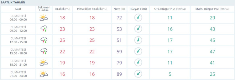 Uyarı: Özellikle öğle ve öğleden sonra saatlerinde ani bastıran yağışlara karşı dikkatli olunmalı. Kuvvetli rüzgar da zaman zaman etkili olabilir.