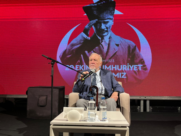 101. yıl Cumhuriyet Ödül Törenlerininde ödüle layık görülen Dr. Naim Babüroğlu, Ulu Önder Mustafa Kemal Atatürk’ün başarılarından, Cumhuriyetin ne zorluklarla kurulduğunu anlatan bir sunum yaptı.