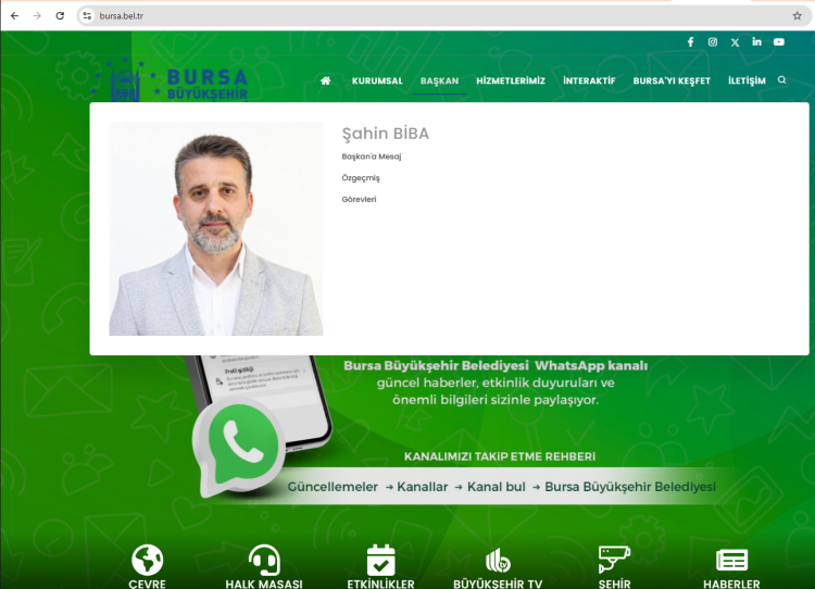 Rüşvet ve yolsuzluk soruşturması kapsamında Belediye Başkanı Mustafa Bozbey’in tutuklanarak görevden uzaklaştırılması, Bursa Büyükşehir Belediyesi’nde hareketli günlerin yaşanmasına neden oluyor. Belediye Meclisi’nde yapılan seçimle AK Partili Şahin Biba’nın başkanvekili görevine getirilmesinin ardından, kurumun dijital mecraları ve yönetim kadrosu yeniden şekilleniyor.