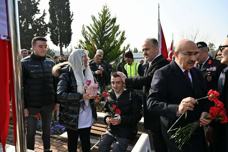 Bursa Valisi Mahmut Demirtaş ve Bursa Büyükşehir Belediye Başkanı Alinur Aktaş ile Bursa protokolü ve şehit ailelerinin de katıldığı etkinlikte, çelenk sunumları, saygı atışı, İstiklal Marşı’nın okunması ve Türk Bayrağı’nın göndere çekilmesinin ardından şehitler dualarla anıldı.