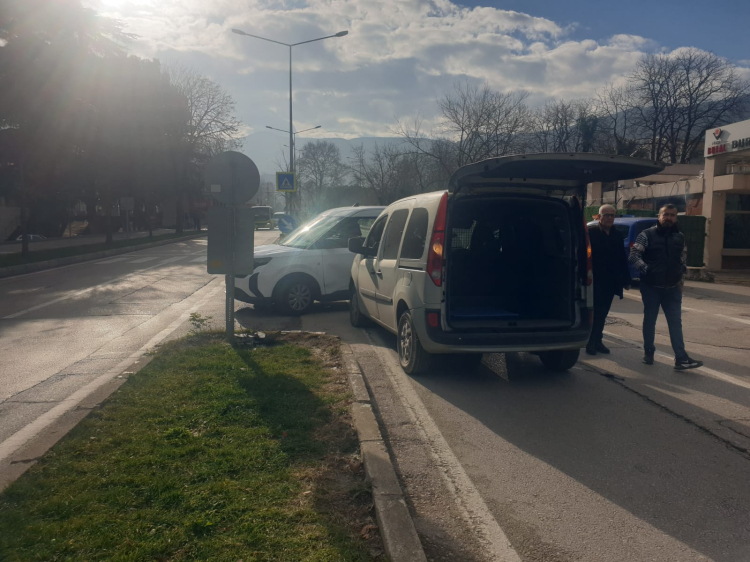 Bursa'nın Osmangazi ilçesinde meydana gelen trafik kazasında iki araç çarpıştı. Çarpışmanın etkisiyle araçlarda maddi hasarlar oluştu.