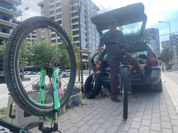 Yaz aylarında bisikletlerin çok yoğun kullanıldığını, okullar kapandıktan sonra bu yoğunluğun ikiye katlandığını söyleyen Aktürk, “Amacım sadece tamir yapmak değil, güvenli ve keyifli sürüş için destek olmak” diyerek seyyar servisinin her mahallede sürdürülebilir şekilde devam edeceğini belirtiyor.