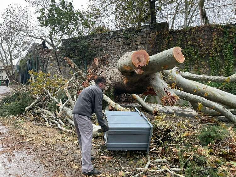 Devasa duvarı aşıp yola devrilen çınar ağacı yolu kapattı. Belediye ekipleri çınarı keserek yolu trafiğe açtılar. Tescilli anıt eser olan çınarın devrildiği esnada yoldan kimsenin geçmemesi ise muhtemel faciayı önledi.