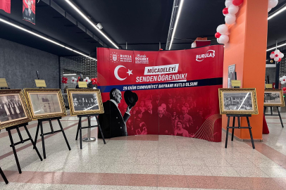 Türkiye Cumhuriyeti'nin 101. kuruluş yıl dönümü, Bursa’da coşkuyla kutlanırken, şehirdeki sokaklar ve iş yerleri Türk bayraklarıyla süslendi. Merinos Metro İstasyonu'nda oluşturulan sergide, Gazi Mustafa Kemal Atatürk’ün fotoğrafları sergilenerek Cumhuriyet’in önemi bir kez daha vurgulandı.