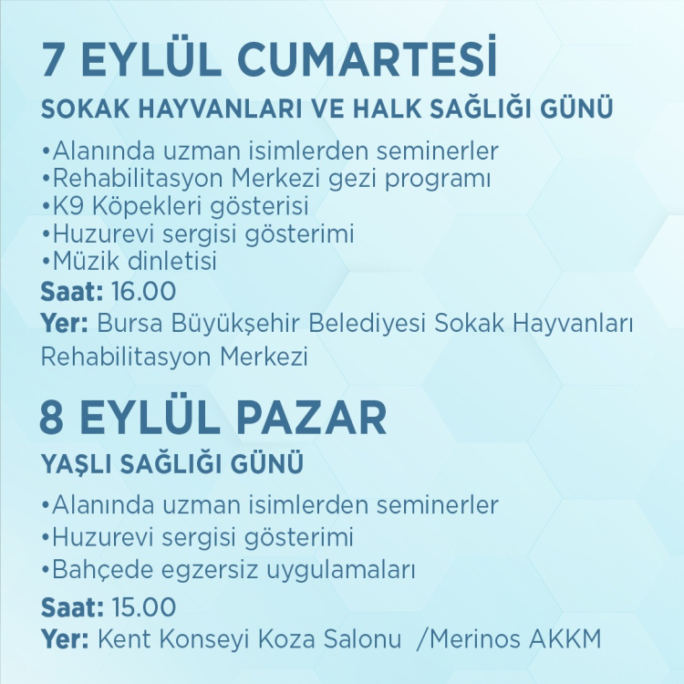 Halk Sağlığı Haftası nedeniyle Bursa Büyükşehir Belediyesi tarafından 7 gün boyunca çeşitli etkinlikler düzenlenecek.