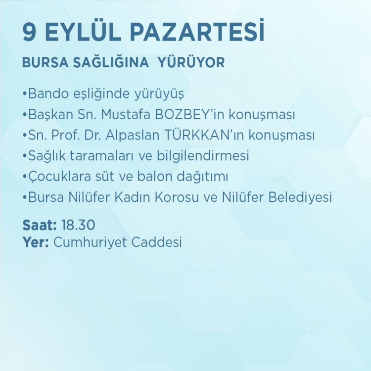 Bursa'da 3-9 Eylül tarihleri arasında kutlanacak Halk Sağlığı Haftası nedeniyle sağlıkla ilgili çeşitli etkinlikler düzenlenecek.