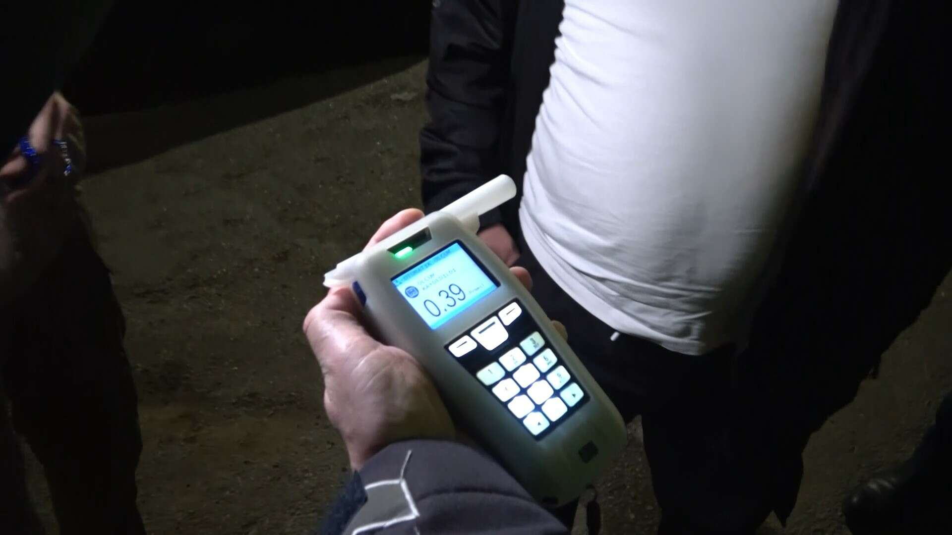 Alkolmetreyi karşısında gören sürücü, üflediği cihazda 0.34 promil alkollü çıktı. Bu durumda aracın trafikten men edileceğini ve sürücünün ehliyetine 6 ay el konulacağını öğrenen sürücü, dakikalarca itiraz etti.