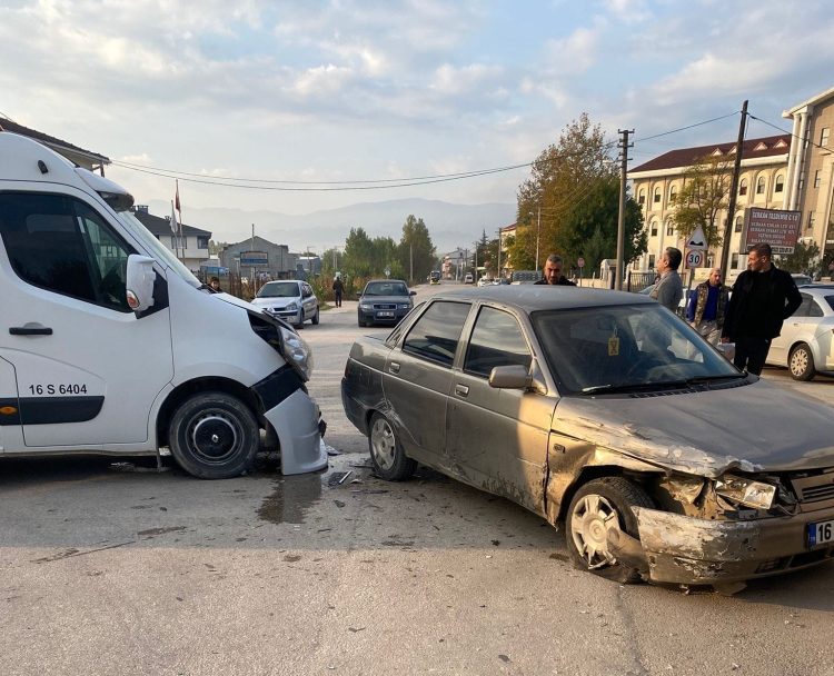 Bursa’nın İnegöl ilçesi Akhisar Mahallesi 2. Fatih Caddesi'nde saat sabah saatlerinde gerçekleşen kazada, Selver Ş. (35) idaresindeki 16 LKS 44 plakalı otomobil, ara sokaktan çıkan Davut Ö. yönetimindeki 16 S 6404 plakalı servis minibüsüyle çarpıştı.