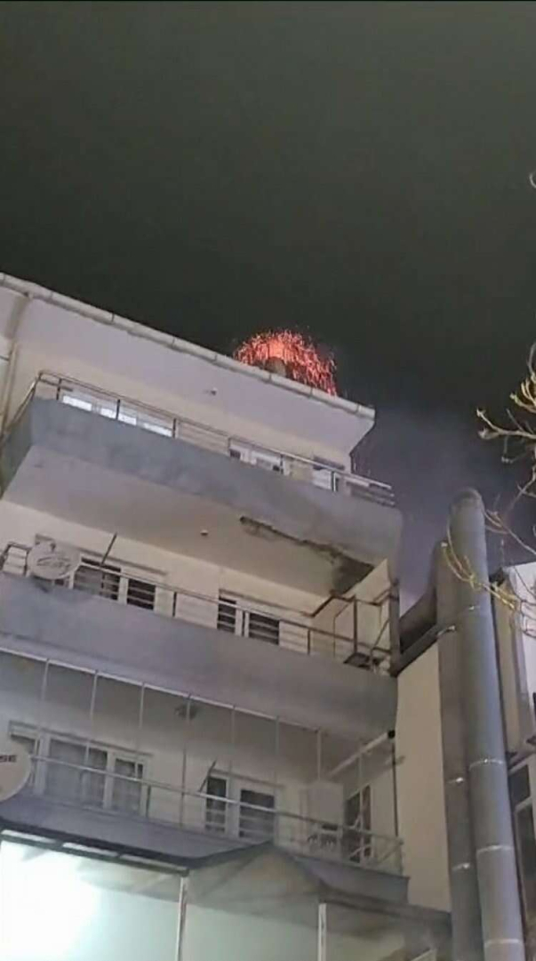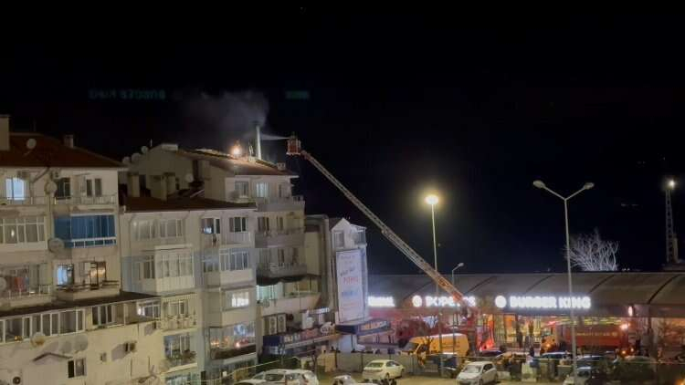 Alevleri gören çevredekiler durumu hemen 112 ekiplerine bildirdi. Alevlerin hızla yayılmasıyla yangın binanın bacasını da sıçradı. Olay yerine gelen itfaiye ekipleri yangına hızla müdahale etti.