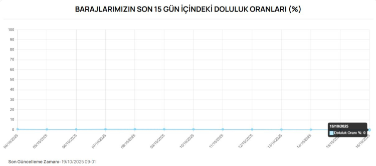 15 Ekim’de %0,15 seviyesinde olan baraj doluluk oranı, 16 Ekim’de tamamen sıfırlandı. Bu durum, kentteki su krizinin ciddi bir şekilde yaşanmaya devam ettiğini gösteriyor.