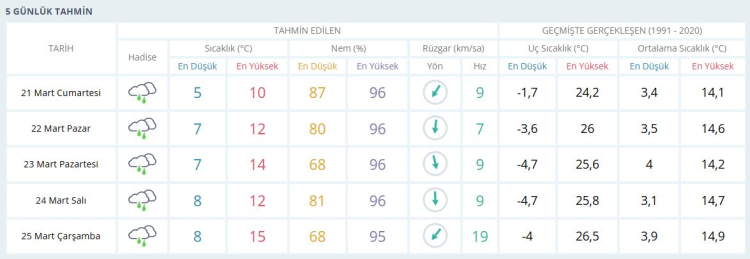 21 Mart Cumartesi: Yağmurlu, en düşük 5°C – en yüksek 10°C