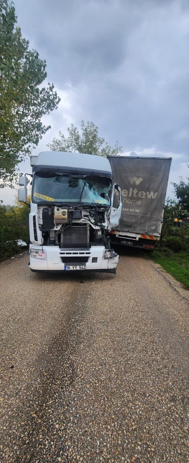 Edinilen bilgilere göre, 30 yaşındaki Recep S. yönetimindeki 16 YT 542 plakalı kamyon, karşı yönden gelen Emrullah B. (39) idaresindeki 16 KAK 52 plakalı kamyonla daralan yolda çarpıştı. Çarpışmanın etkisiyle Emrullah B. kamyon kabininde sıkıştı.