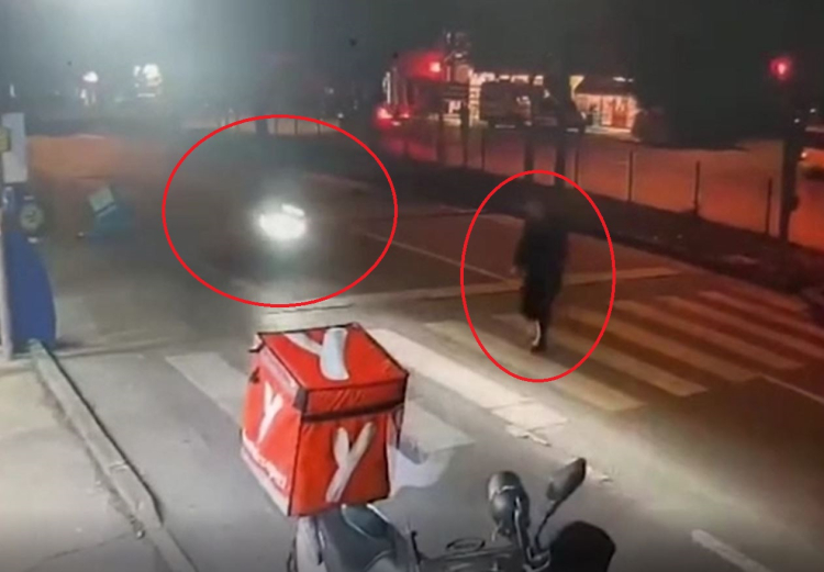 Kazanın yaşandığı anlar, çevredeki bir iş yerinin güvenlik kamerasına yansıdı. Görüntülerde, motosikletin ilerlediği yöne yeşil ışığın yandığı, bu sırada yolun karşısına geçmeye çalışan yayaya çarptığı görülüyor.