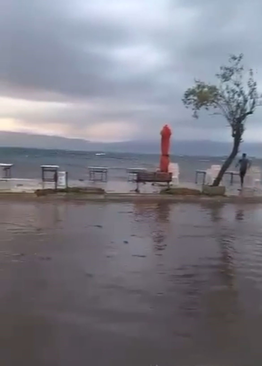 Bursa'da deniz taştı, sahil şeridi suya gömüldü