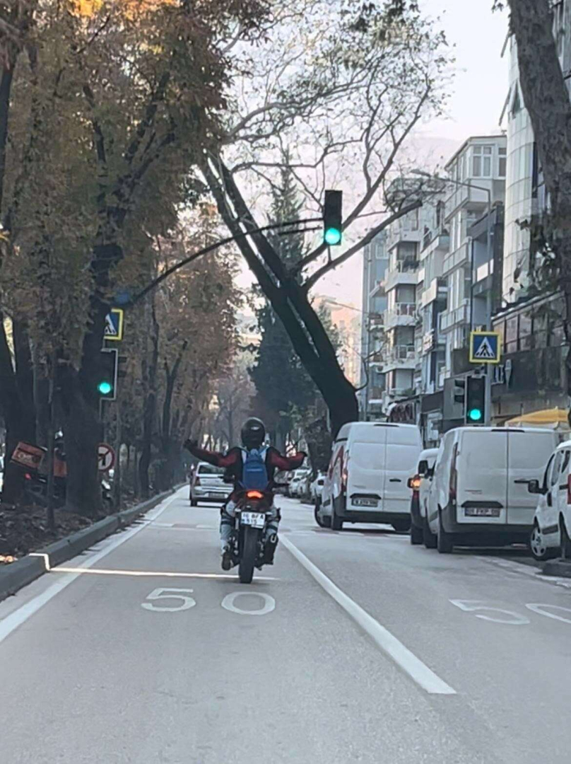 Merkez Osmangazi ilçesi Kükürtlü Caddesi üzerinde iki arkadaş motosikletleriyle trafiğe çıktı.