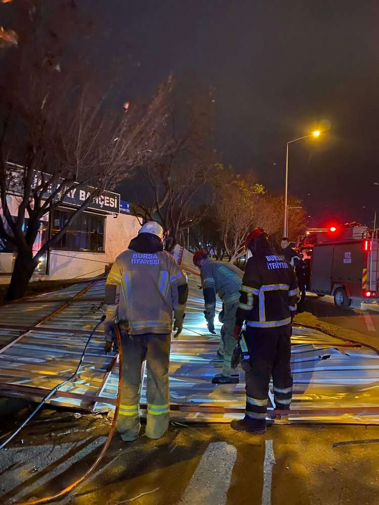 Bursa’da akşam saatlerinde etkisini arttıran ve gece hızı saatte 95 kilometreye kadar çıkan lodos, kentte yaşamı adeta felç etti. Uçan çatılar ve devrilen ağaçlar park halindeki pek çok ağaca zarar verirken, metronun elektrik hatlarına devrilen bir ağaç yüzünden ulaşımda kısa süreli aksama yaşandı. Yine Tophane semtinde uçan bir çatı belediye otobüsünün üzerine devrilirken, yaralanan iki yolcu hastaneye kaldırıldı. AFAD, itfaiye, polis ve 112 sağlık ekipleri gece boya bir ihbardan diğerine yetişmeye çalışırken, Büyükşehir Belediyesi’nin ilgili tüm birimleri de lodos zararlarını ortadan kaldırmak için geceden sabaha yoğun bir mesai harcadı.