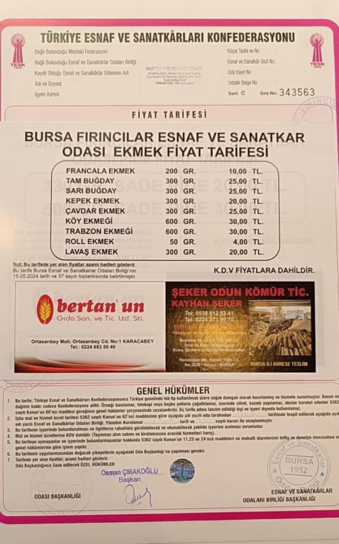 Bursa'da Ocak ayında 250 gram olarak üretilen ekmek 10 liradan tezgahta yerini alırken, artan maliyetlerden dolayı Bursa Esnaf ve Sanatkarlar Odaları Birliği 15 Mayıs tarihinde bir araya geldi.