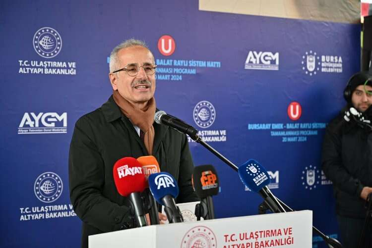 2002 yılından bu yana Cumhurbaşkanımız Sayın Recep Tayyip Erdoğan’ın liderliğinde şehirlerimiz trenlerle birbirlerine bağlarken şehir içi raylı sistemlerini de birbiri ardına hayata geçiriyoruz diyen Ulaştırma ve Altyapı Bakanı Abdülkadir Uraloğlu, “Türkiye Yüzyılında adeta kent için raylı sistem fırtınasını estiriyoruz. Ülke genelinde inşa ettiğimiz kent içi raylı sistem uzunluğumuz 433 km oldu. Değerli Bursalı hemşerilerim sadece İstanbul’da bu sene 34 kilometrelik raylı sistem hattını hayata geçirdik ve Bursa’da bugün buradayız Kocaeli’de hafta sonu yine raylı sistem çalışmalarımızı yürüttük” diye açıkladı. Uraloğlu, İstanbul, Kocaeli ve Bursa’da toplam 47 kilometrelik bir hattın çalışmasını devam ettirdiklerini ifade ederek “Bursa’da hayata geçirdiğimiz Emek-Şehir Hastanesi ve metro hattının bir kısmı Emek istasyonu, Balat istasyonu arasını ve Balat istasyonu tamamlanmasının sevincini yaşıyorum” dedi. Orhangazi‘nin yadigârı, Osmanlı İmparatorluğu’nun ilk büyük başkenti Bursa, başta şanlı tarihimiz olmak üzere sanayinin, ticaretin, tarımın ve turizmin en önde gelen şehirlerinden birisidir. Bu nedenle Bursa’nın ulaşım ve altyapısını güçlendirmek için Bursa’yı geleceğe taşıyacak birçok projeyi birbiri ardına hayata geçirdik ve bundan sonra da yolumuza devam edeceğiz” diye konuştu. Bakan Uraloğlu, 2002 yılından bu yana Bursa’da ulaşım ve iletişim alt yapısına 202 milyar liralık yatırım gerçekleştirdiklerini belirterek “Ulaştırma ve alt yapı bakanlığı olarak bölünmüş uzunluğumuzu 609 km’ye çıkardık. Yine kaplamalı yol uzunluğumuzu 787 km’ye çıkardık. İstanbul- Gebze- Orhangazi İzmir otoyolumuzu bitirdik. Bursa Çevre otoyolunu Bursa-İnegöl-Bozüyük-Ankara sınırı yolumuzu, Bursa Devlet yolu İzmir yolumuzu bitirdik. Önemli güzergahlarımızı tamamladık. Çalı-Kayapa-Hasanağa yolunun ikinci etabını bitirdik. Diğer etapları ile ilgili de yine Büyükşehir belediyemizle gerekli işbirliği içerisinde çalışmalarımızı önümüzdeki dönemlerde yürüteceğiz. Mevcut haliyle 2.9 km bölünmüş yolun 14 kilometresi tek yol olmak üzere 16.9 kilometresi hizmet veren Çalı yolumuzun tamamını inşallah bölünmüş yol haline getireceğiz” dedi.