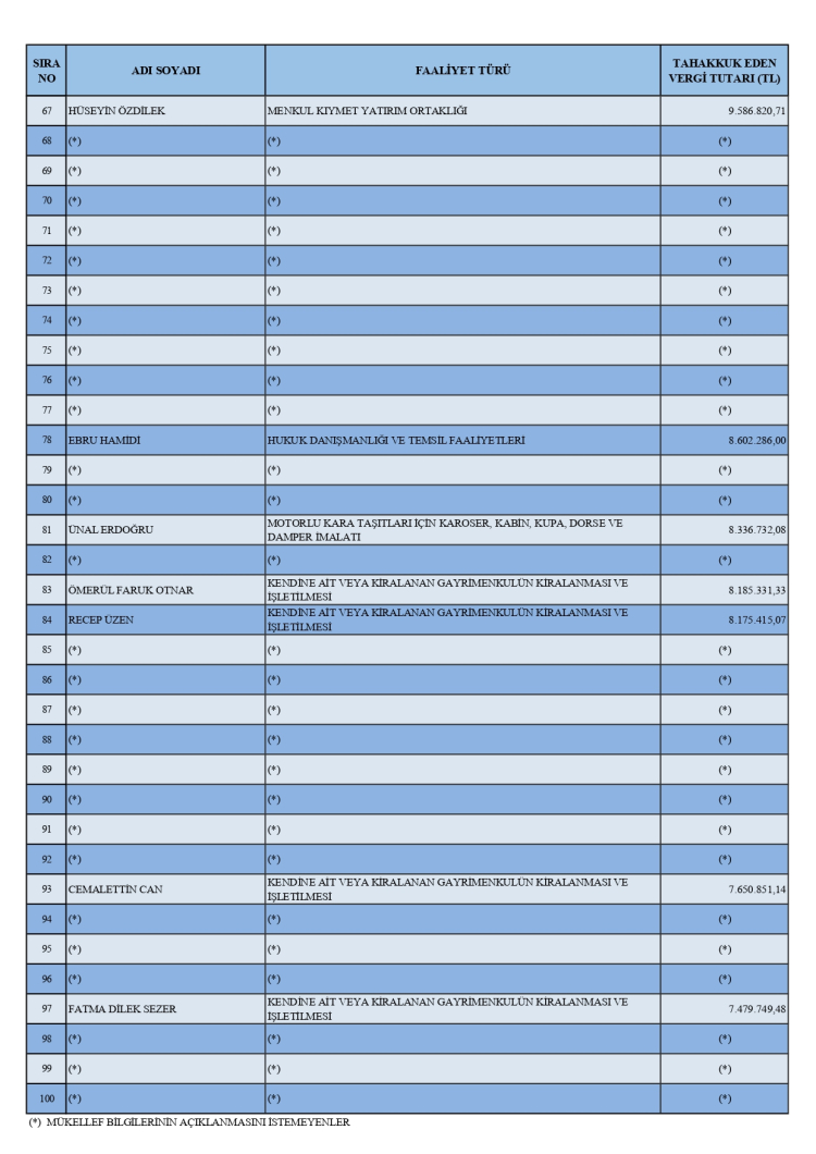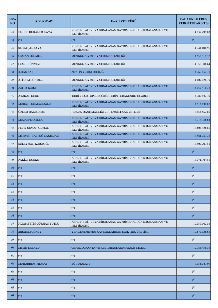 Vergi Usul Kanunu uyarınca açıklanan bu bilgiler, ekonomide şeffaflık, kayıt dışı ile mücadele ve toplumsal sorumluluk bilinci açısından da büyük değer taşıyor.