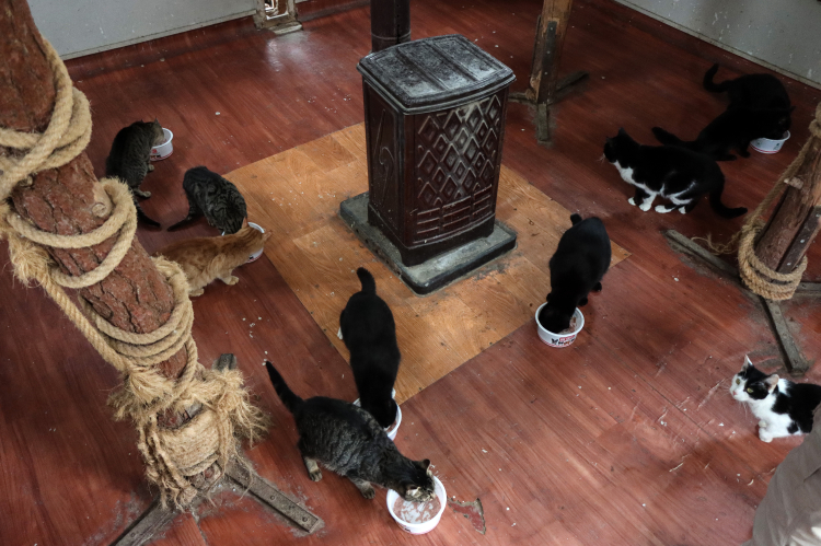 Merkezde yaklaşık 200 kedi, 25 metrekare taban alanına sahip iki villada barınıyor. Kediler günde yaklaşık 10 kilogram kuru mama ile besleniyor ve soğuk havalarda yakılan sobayla ısınıyorlar. Her yıl yüzlerce hayvanın tedavi edilip sahiplendirildiği merkezde, kediler için özel olarak tasarlanmış yaşam alanları da bulunuyor.