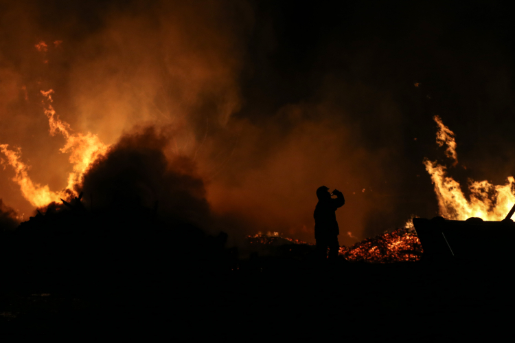 Dile, "Köprü altında balık tutuyorduk ve gökyüzünde kıpkırmızı bir ışık gördük. Yangının olduğu yere yürüdüğümüzde palet fabrikasının alevler içinde olduğunu anladık" dedi.