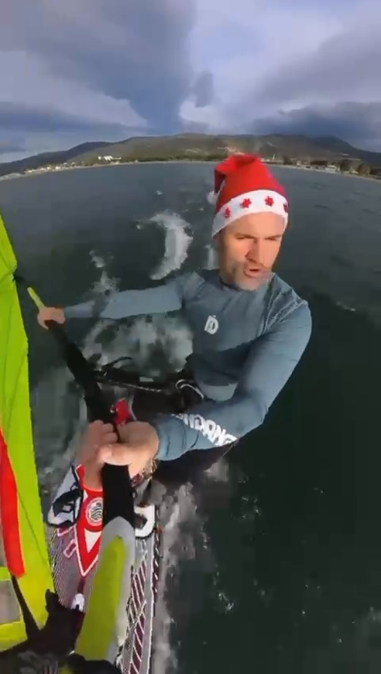 İznik Gölü'nün buz gibi sularında yelkenli sörf yaparak herkesi hayrete düşüren 33 yaşındaki yelken antrenörü Mustafa Öncü, soğuk havaya meydan okudu.